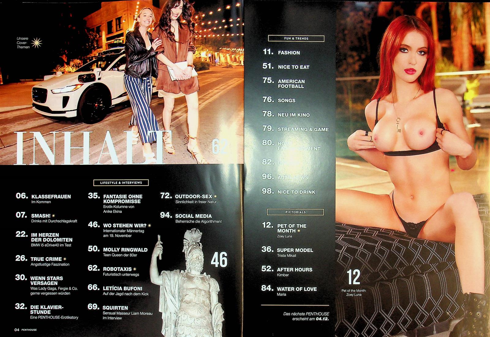 Die deutschsprachige Penthouse präsentiert eine Mischung aus freizügigen Fotografien und Lifestylethemen aus dem Luxussegment, erscheint seit 2015 in einem neuen Gewand als zeitgemäßes Magazin mit modernem und hochwertigem Layout.