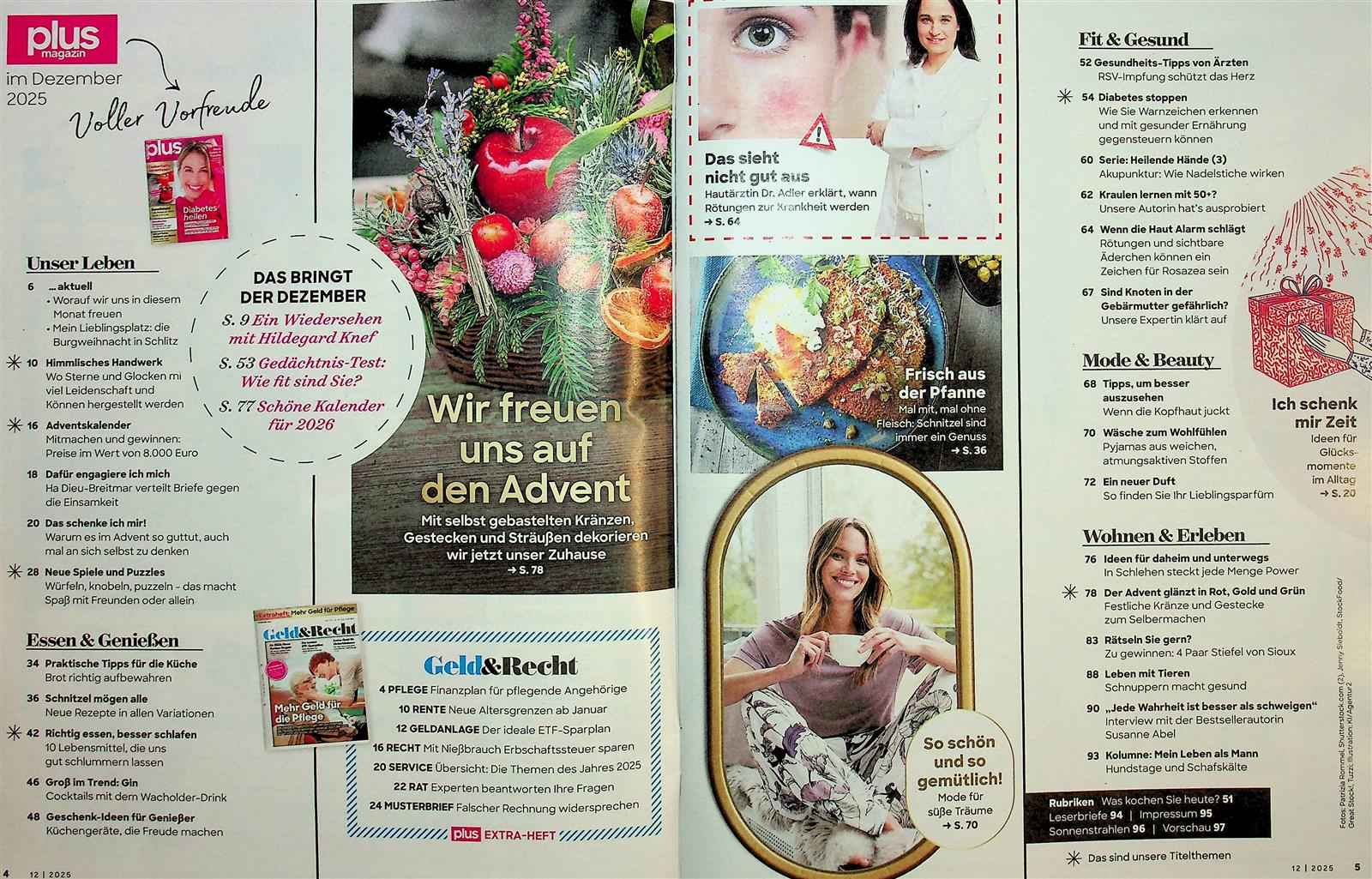 Die Zeitschrift ist sehr informativ und hier ist sicher für jeden etwas dabei. Super finde ich das Extra-Heft mit den vielen Tipps rund um Geld & Recht und natürlich die Rubrik Fit & Gesund.