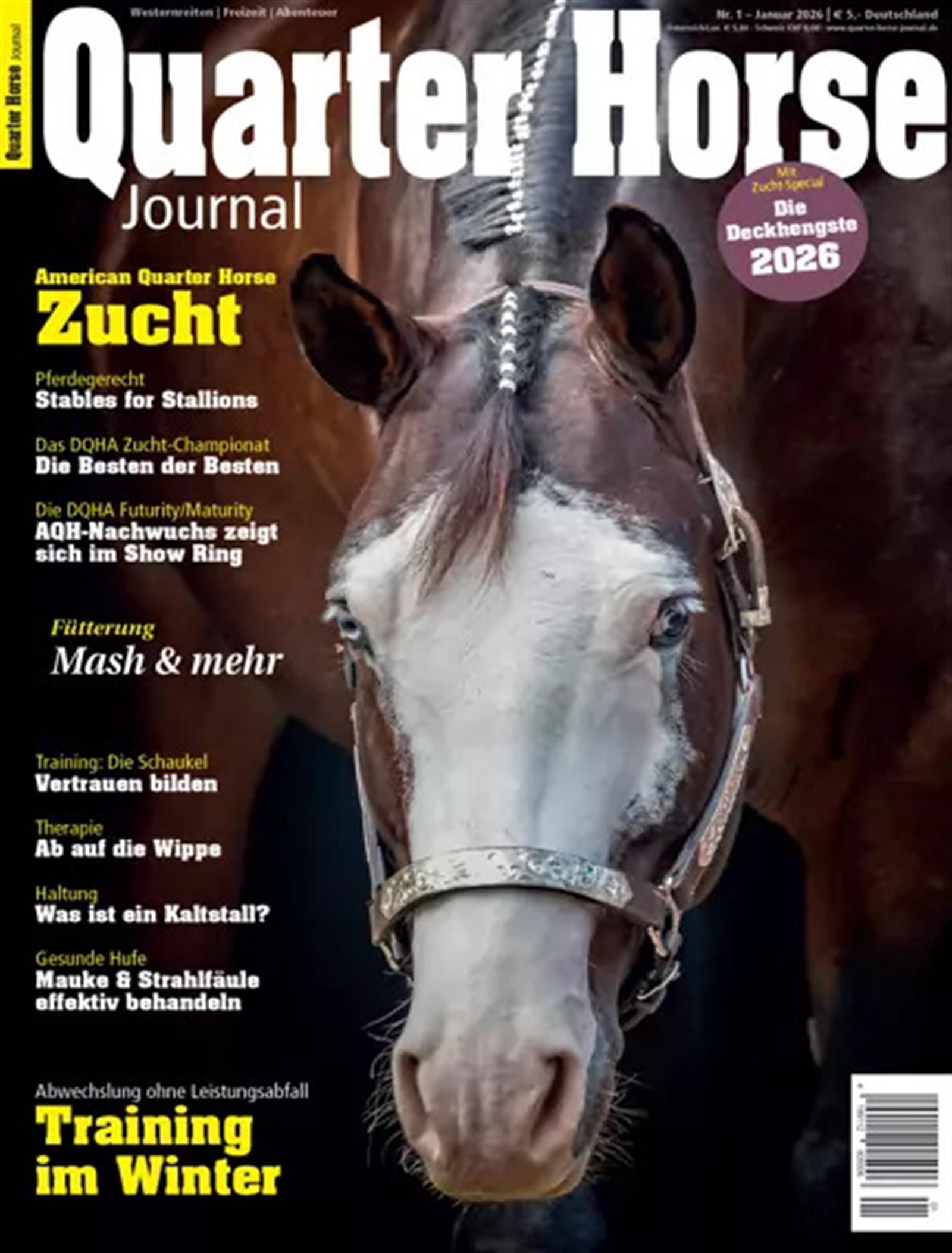 Das Quarter Horse Journal nun ist das Magazin für Western- & Freizeitreiten. Seit seiner Gründung vor über fünfundzwanzig Jahren hat die Deutsche Quarter Horse Association e.V. (DQHA) zielstrebig auf das damals gesteckte Ziel hingearbeitet: das amerikanische Quarter Horse in Deutschland bekannt zu machen, seine Verbreitung zu fördern, zu unterstützen und allen Freunden dieser Pferderasse die Möglichkeit des Wettkampfs zu geben. Sie finden in diesem hochwertigen Magazin Berichte über die Zucht dieser speziellen Pferde, Sport-Events und Freizeitreiten. Dazu kommen Reportagen über Prämierungen und Zuchtschauen, das Training, die richtige Haltung und Fütterung der edlen Tiere. Informationen über Turniere und Platzierungen, Ausstellungen und Ausrüstung auf höchstem Standard ergänzen das leidenschaftliche Magazin. Damit ist das Quarter Horse Journal längst zu einem unverzichtbaren Titel aller Western- und Freizeitreiter geworden.