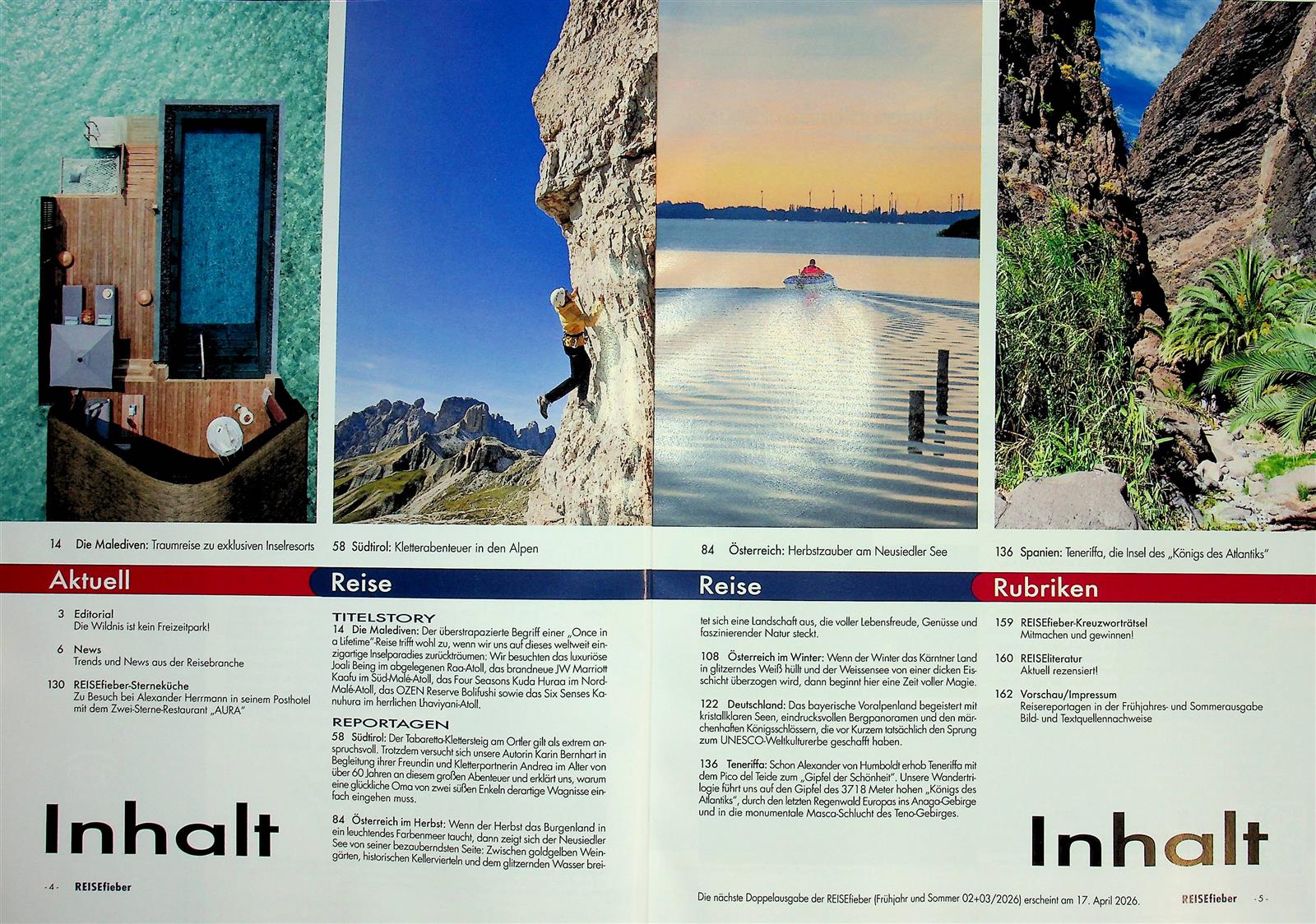 Die Zeitschrift Reisefieber bietet eine Vielzahl von Inhalten, die Reisen zu einem unvergleichlichen Erlebnis machen. Sie umfasst spannende Reiseberichte aus aller Welt, die Leser zu neuen Abenteuern inspirieren. Zudem findet man nützliche Reisetipps, die sowohl für Anfänger als auch für erfahrene Reisende wertvoll sind. Ein weiteres Highlight sind die Fotostrecken, die nicht nur visuelle Eindrücke vermitteln, sondern auch Informationen über die jeweiligen Destinationen bieten. Auch Themen rund um Nachhaltigkeit beim Reisen sowie Kultur und Gastronomie werden behandelt, sodass Leser ein tiefgehendes Verständnis für ihre Reiseziele erlangen können. Zusätzlich hält Reisefieber aktuelle Trendziele und spannende Interviews mit Reisenden und Experten bereit, die wertvolle Einblicke und persönliche Geschichten teilen.