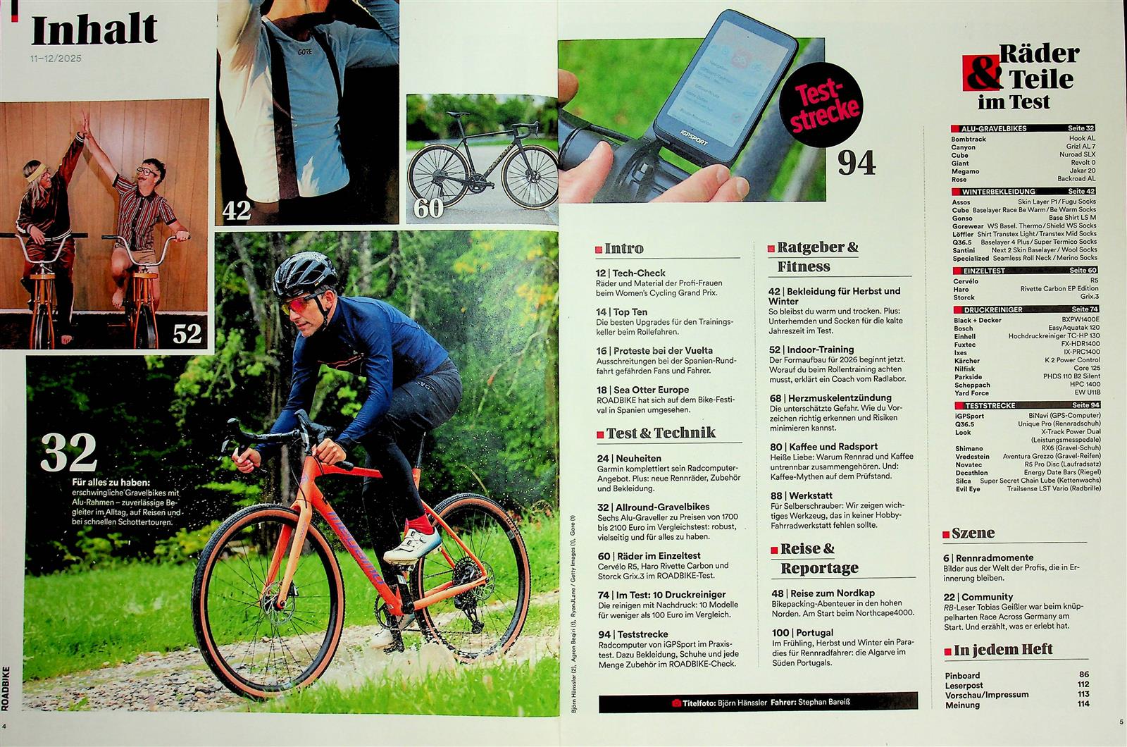 RoadBIKE ist eine beliebte deutschsprachige Fachzeitschrift für Radsport und Rennradfahrer. Die Zeitschrift bietet regelmäßig Tests, Tipps und Informationen rund um das Thema Rennradfahren. RoadBIKE liefert aktuelle News zu Rädern, Zubehör, Technik und Trainingsmethoden. Mit fundierten Testberichten und Expertenmeinungen hilft die Zeitschrift ihren Lesern, die richtige Ausrüstung für ihre Bedürfnisse zu finden. Egal ob Anfänger oder Profi, RoadBIKE richtet sich an passionierte Radsportler jeden Levels, die ihre Leidenschaft für das Rennradfahren vertiefen möchten.