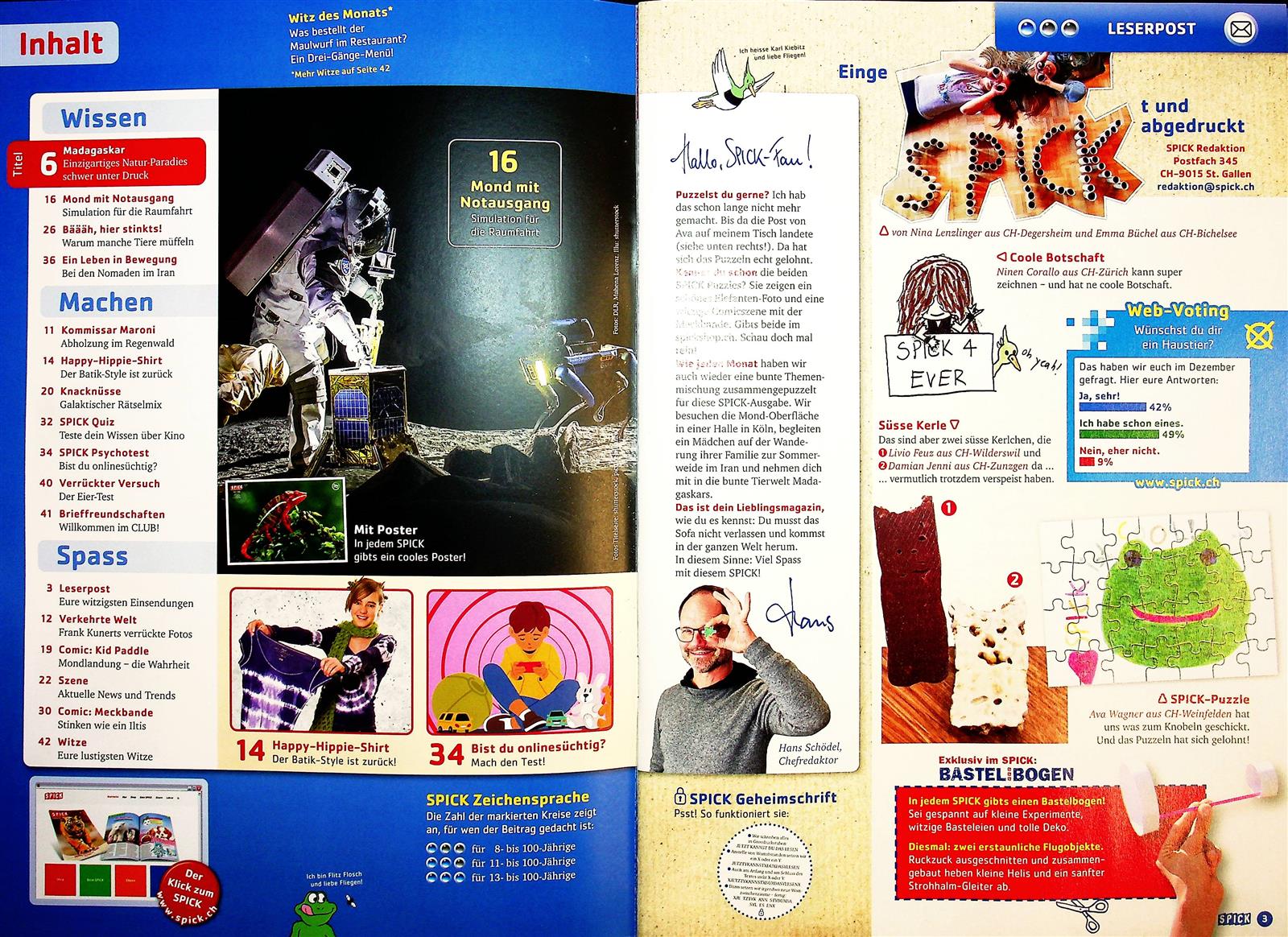 ich habe meiner enkelin ein spick abo geschenkt und wieder einmal im spick gestöbert. diese zeitschrift ist seit jahren etwas vom besten für kinder und jugendliche. super dass der spick seine qualität über diese vielen jahre beibehalten hat!