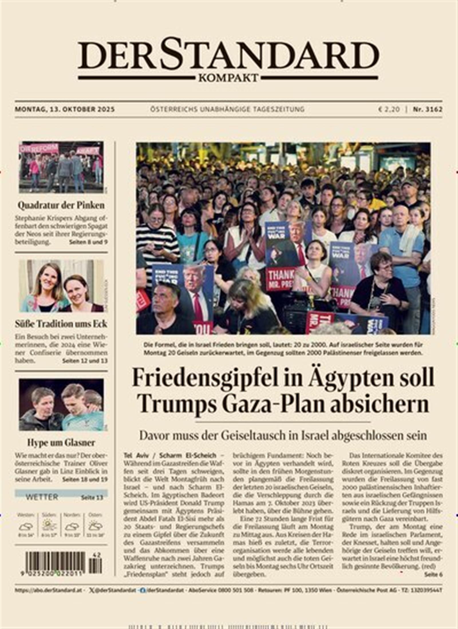 Der Standard zählt zu den renommiertesten Tageszeitungen Österreichs und steht seit seiner Gründung für liberalen, unabhängigen Journalismus. Mit tiefgehenden Analysen, Kommentaren und fundierten Berichten bietet die Zeitung täglich einen kritischen Blick auf das politische, gesellschaftliche und wirtschaftliche Geschehen – in Österreich, Europa und der Welt.