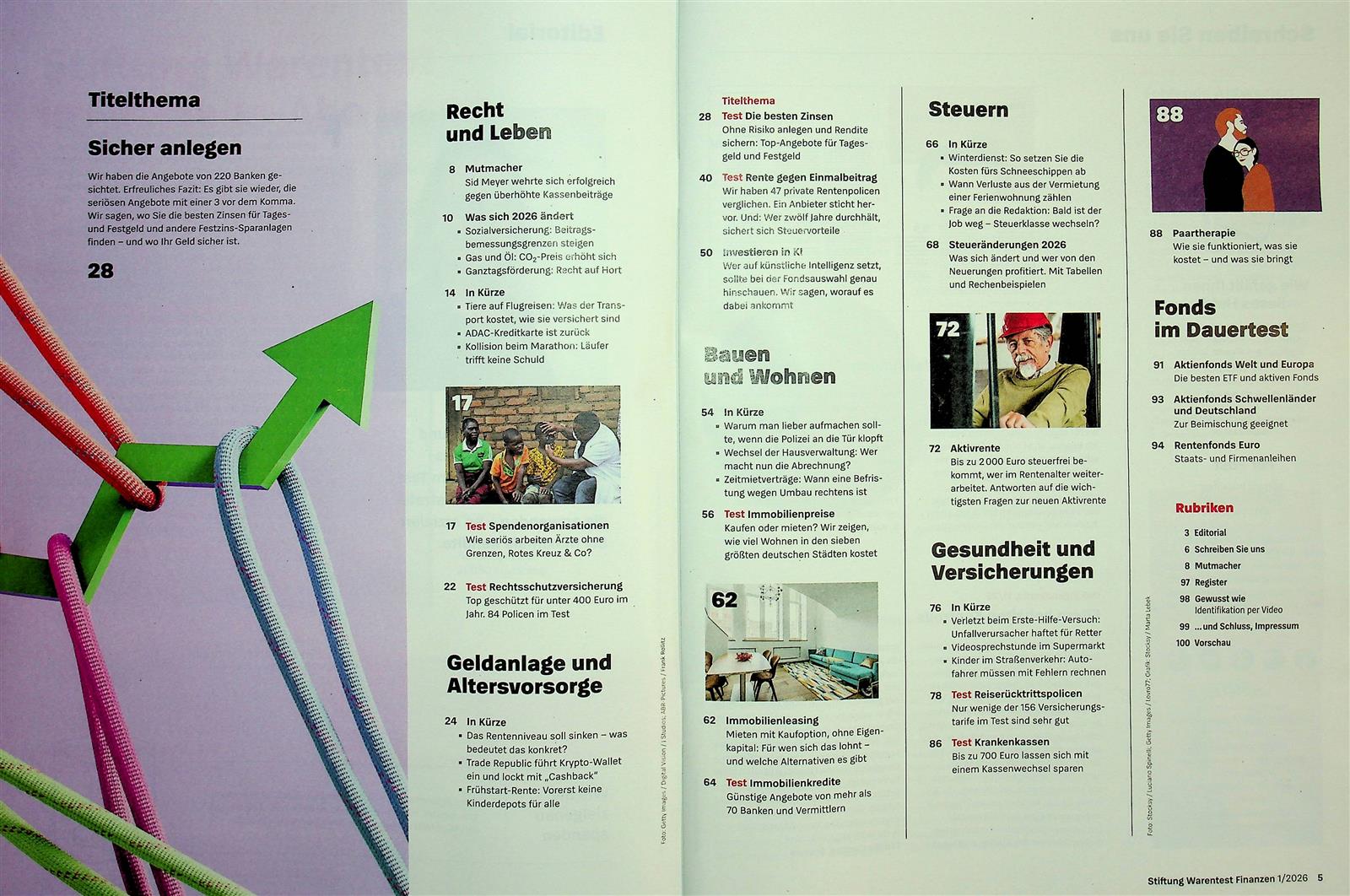 Stiftung Warentest Finanzen ist eine Publikation der Stiftung Warentest, einer deutschen Verbraucherorganisation, die absolute Unabhängigkeit und Freiheit von jeglicher Werbung garantiert. Der noch bekanntere Titel der Institution aus Berlin ist jedoch vermutlich Test, und seine Test-Sonderausgaben sind ebenfalls immens begehrt.