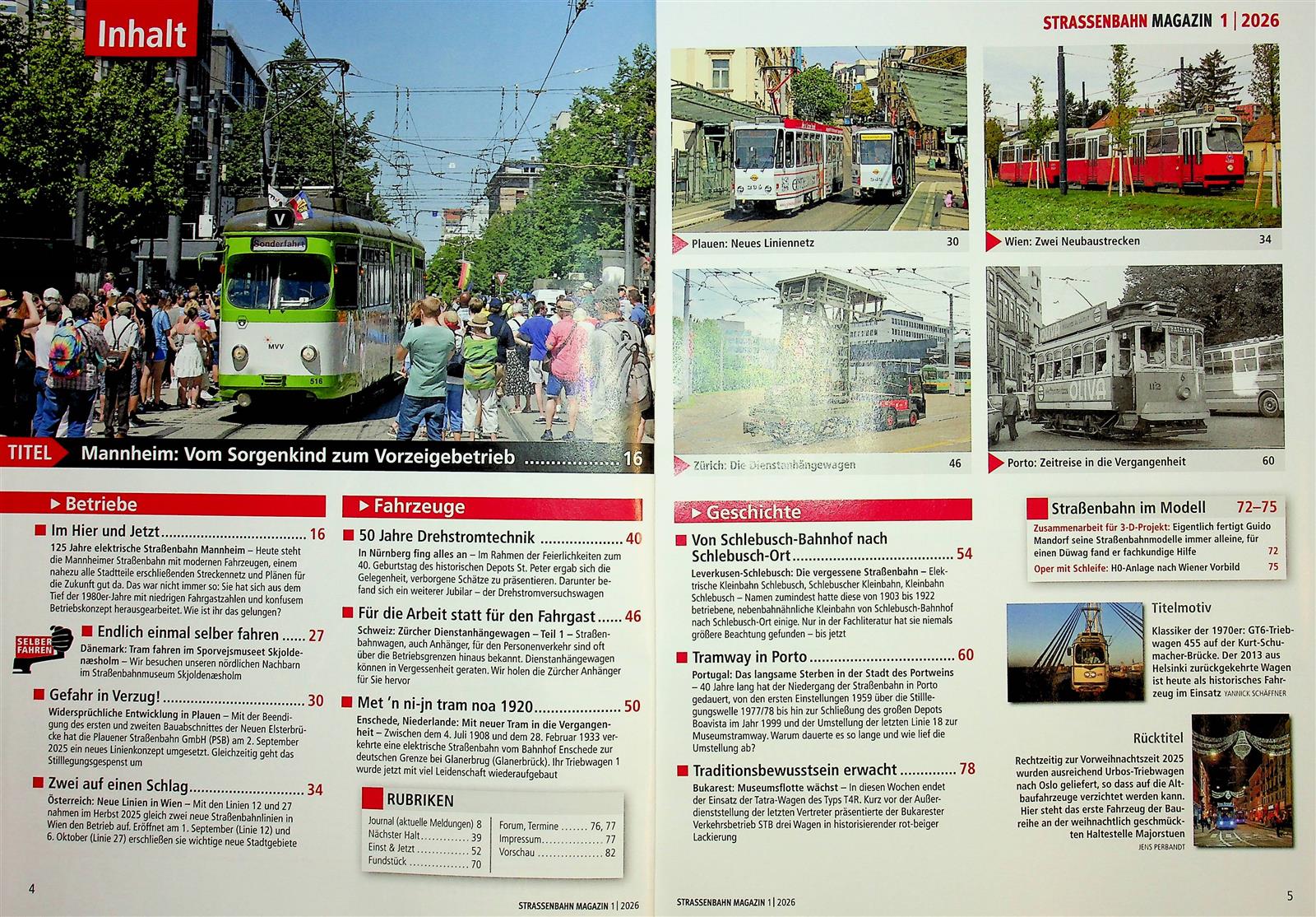 Die ganze Welt der Tram Monat für Monat neu erleben, das geht nur mit dem Strassenbahn Magazin. Die nach eigener Aussage größte Straßenbahn-Zeitschrift Europas verknüpft Historisches und Aktuelles aus der Welt des elektrischen Nahverkehrs und bietet neben umfänglichen Geschichten und Wissen zum Thema auch die nostalgischen Bilder der Trambahnen. In diesem Magazin gibt es für Straßenbahn-Liebhaber einfach immer etwas Neues zu entdecken.