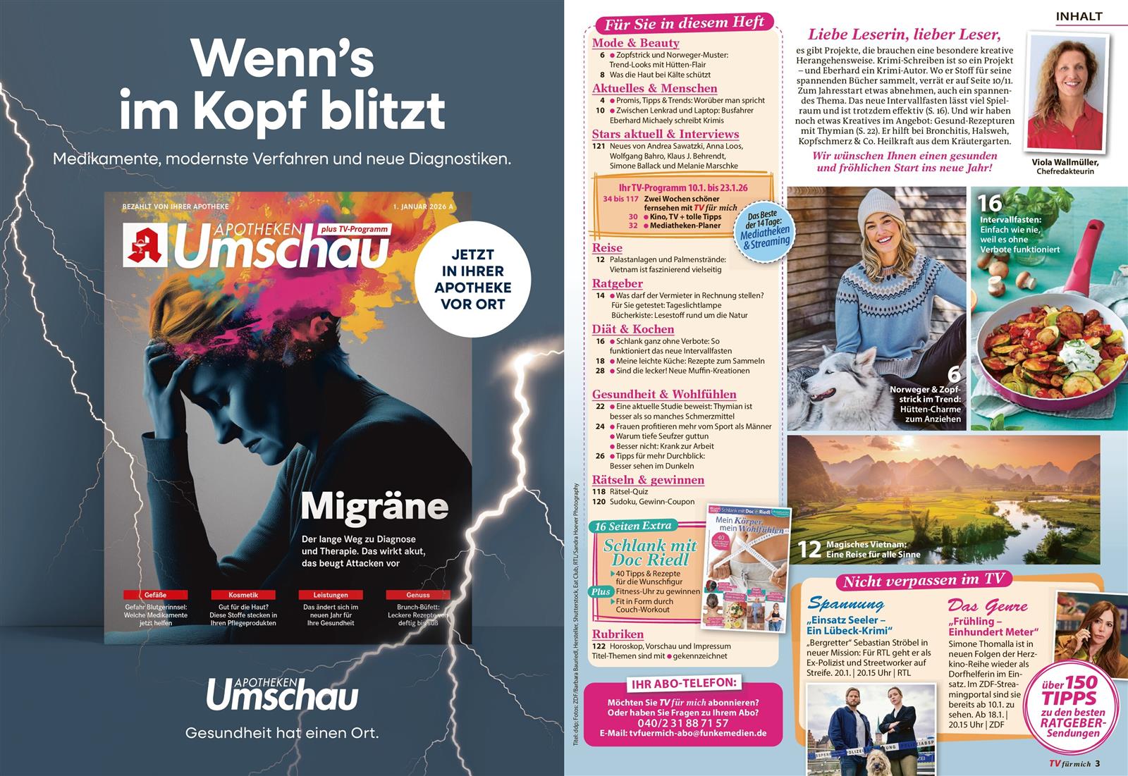 Die TV für mich ist eine Kombination aus eigentlich zwei Zeitschriften. Zum einen 14-tägliche TV-Programmzeitschrift, zum anderen Frauenzeitschrift.