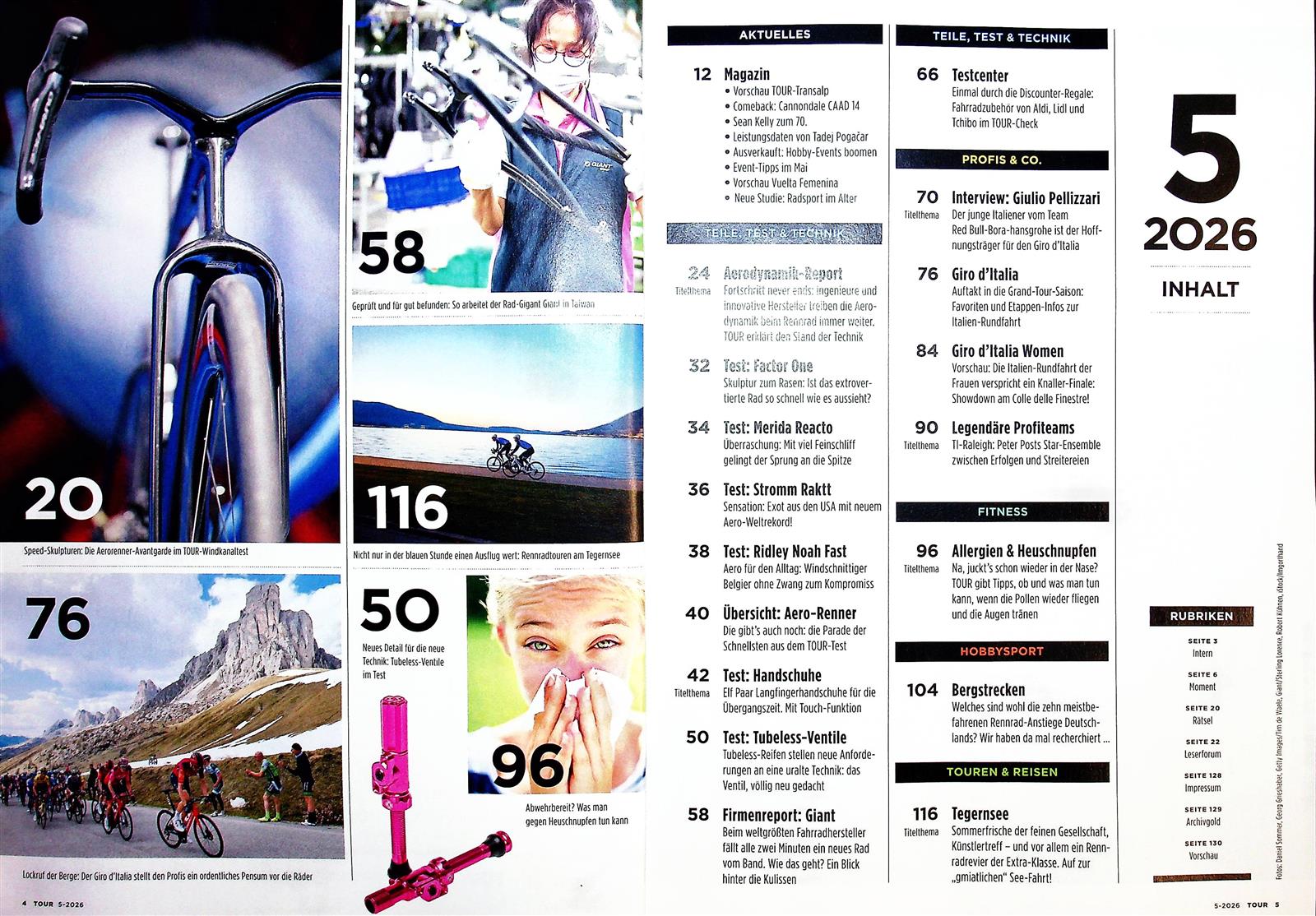 Wie es der Name bereits nahelegt, handelt es sich bei Tour um eine Radsport Zeitschrift. Auf dem Markt existieren eine Fülle an vergleichbaren Titeln wie beispielsweise die Zeitschrift Rennrad.