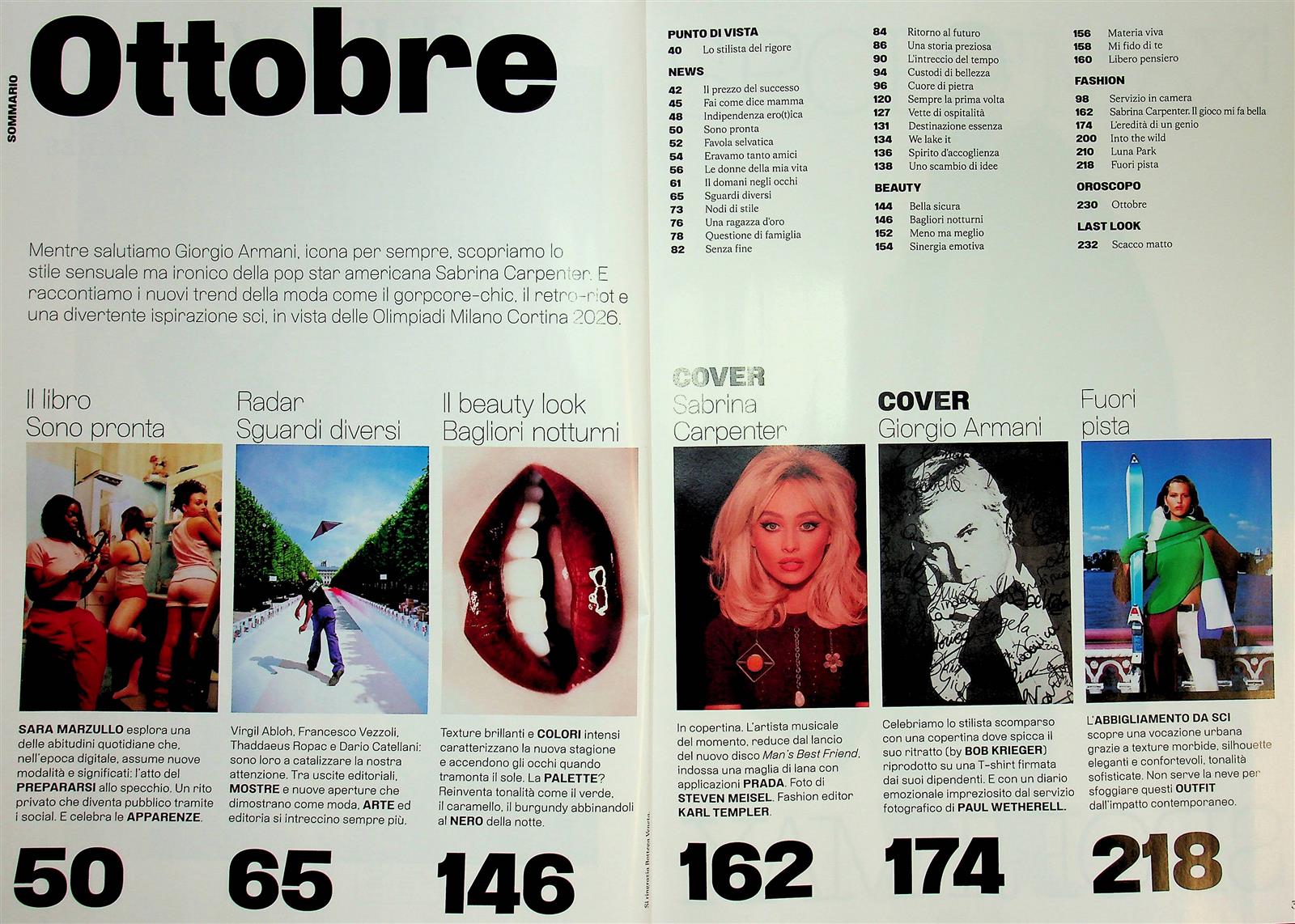 Uno speciale servizio fotografico per celebrare i 50 ANNI del suo marchio: era il nostro modo per raccontare GIORGIO ARMANI e la sua mostra che, per la prima volta, avrebbe portato la moda alla Pinacoteca di Brera. Ora che lui non c’è più, quello stesso servizio diventa il CUORE di un DIARIO emozionale, una galleria di ricordi che comprende pagine di Vogue e foto personali, il cinema e le sfilate. Un omaggio da parte di chi l’ha amato e seguito in ogni momento della sua lunga CARRIERA. E un modo per dire: grazie Maestro!