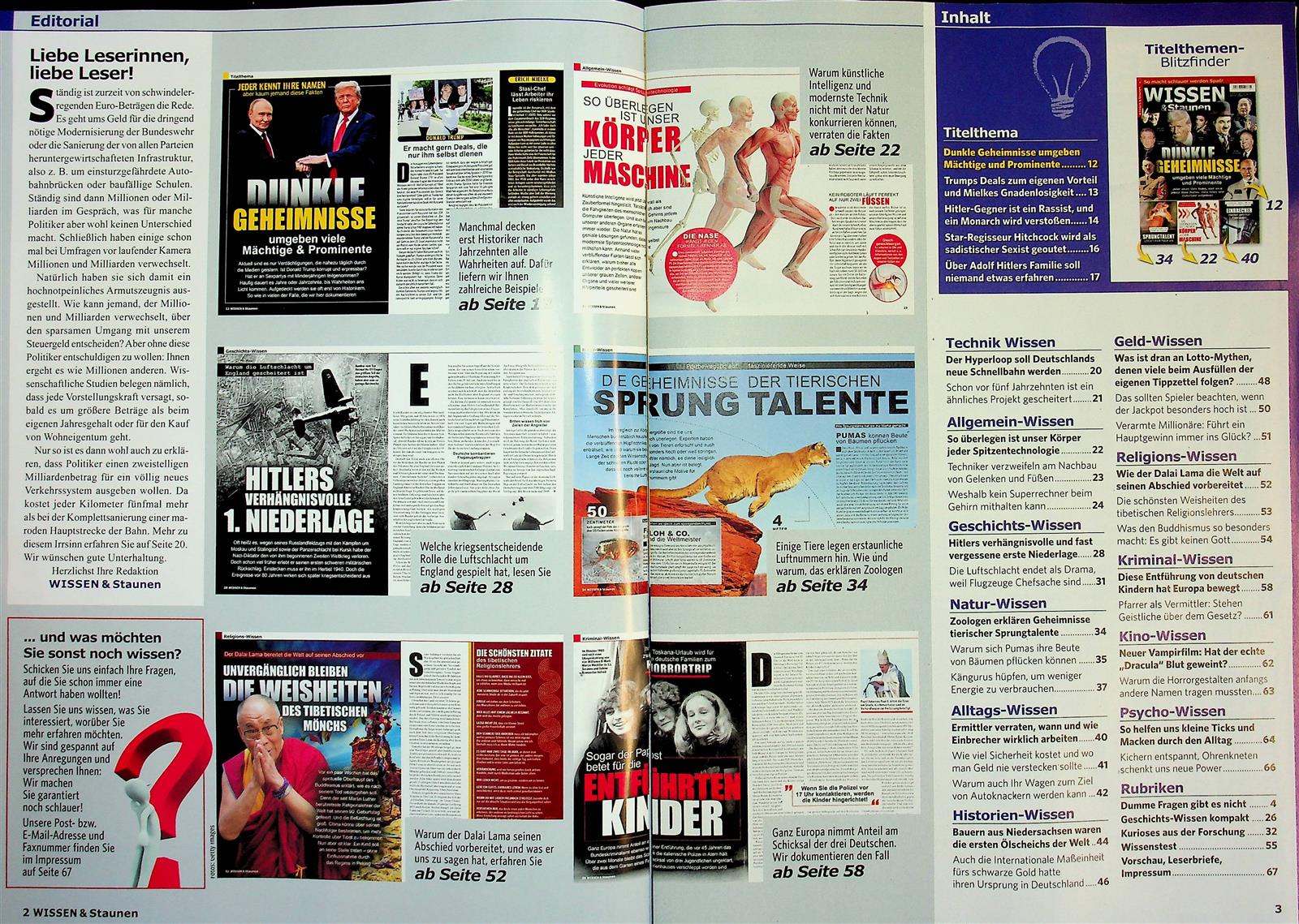 Der Titel Wissen & Staunen ist ein Magazin für die gesamte Familie. Im Vordergrund stehen Wissensthemen, die in leicht verständlicher und populärer Weise aufbereitet werden. Wissen & Staunen erscheint seit 2011.