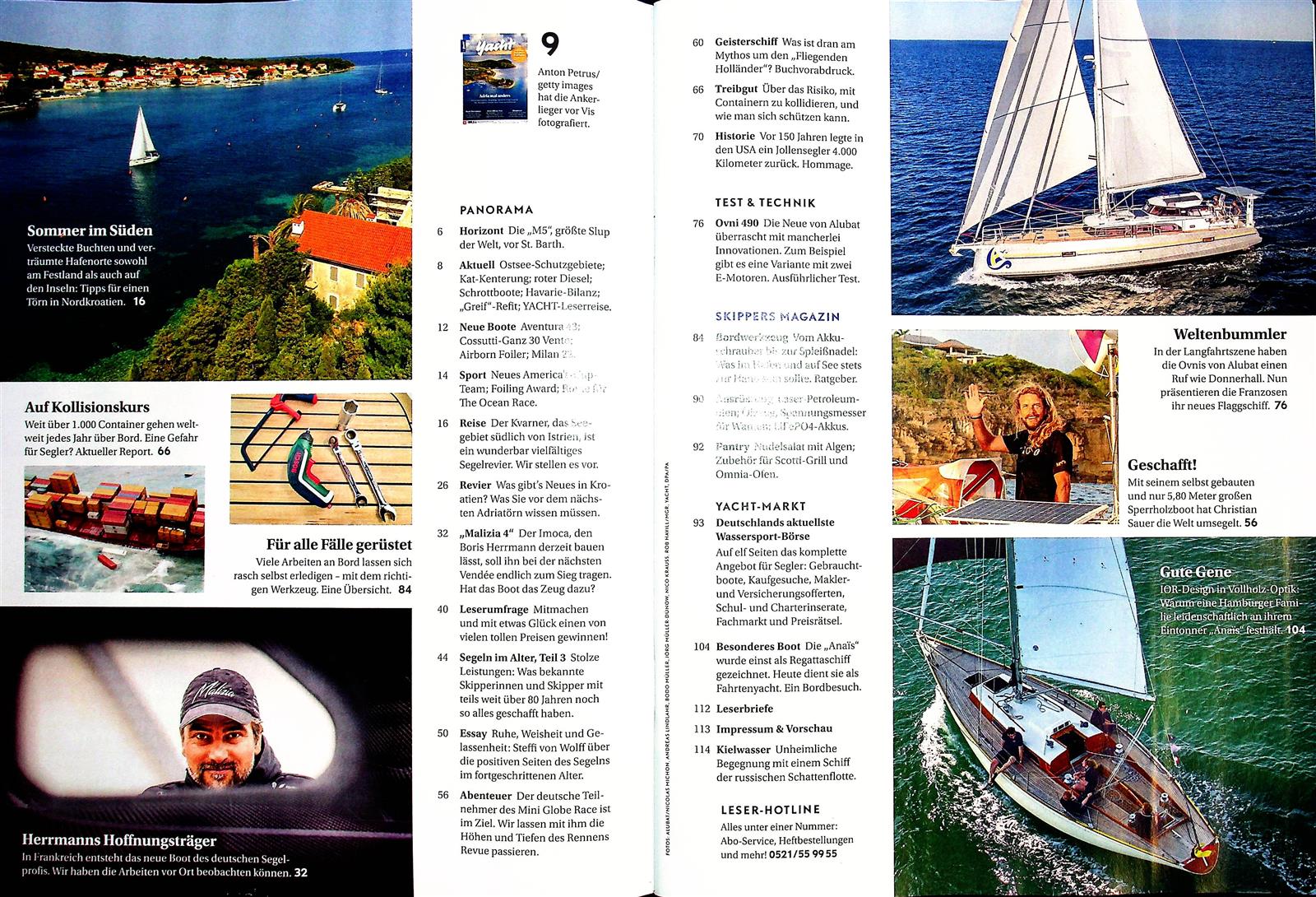 Yacht erscheint vierzehntäglich und wurde bereits 1904 ins Leben gerufen. In der Zeitschrift geht es vor allem um das Thema Segeln bzw. das Fahrtensegeln.