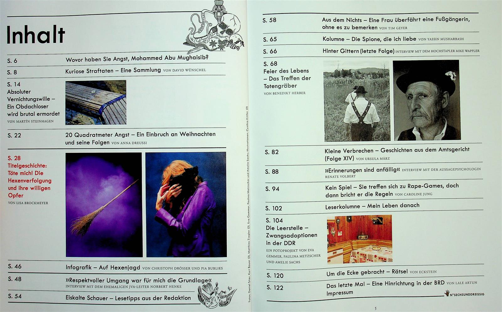 Aufwendig recherchierte und fundierte Verbrechensreportagen bilden die Basis, das gern Experten und Prominente bei der Einordnung zurate zieht und die Berichterstattung durch spannende Interviews ergänzt. Platz finden zudem gewaltige Bildstrecken, die die Leser in seinen Bann ziehen und noch intensiver die Geschehnisse nachvollziehen lassen.