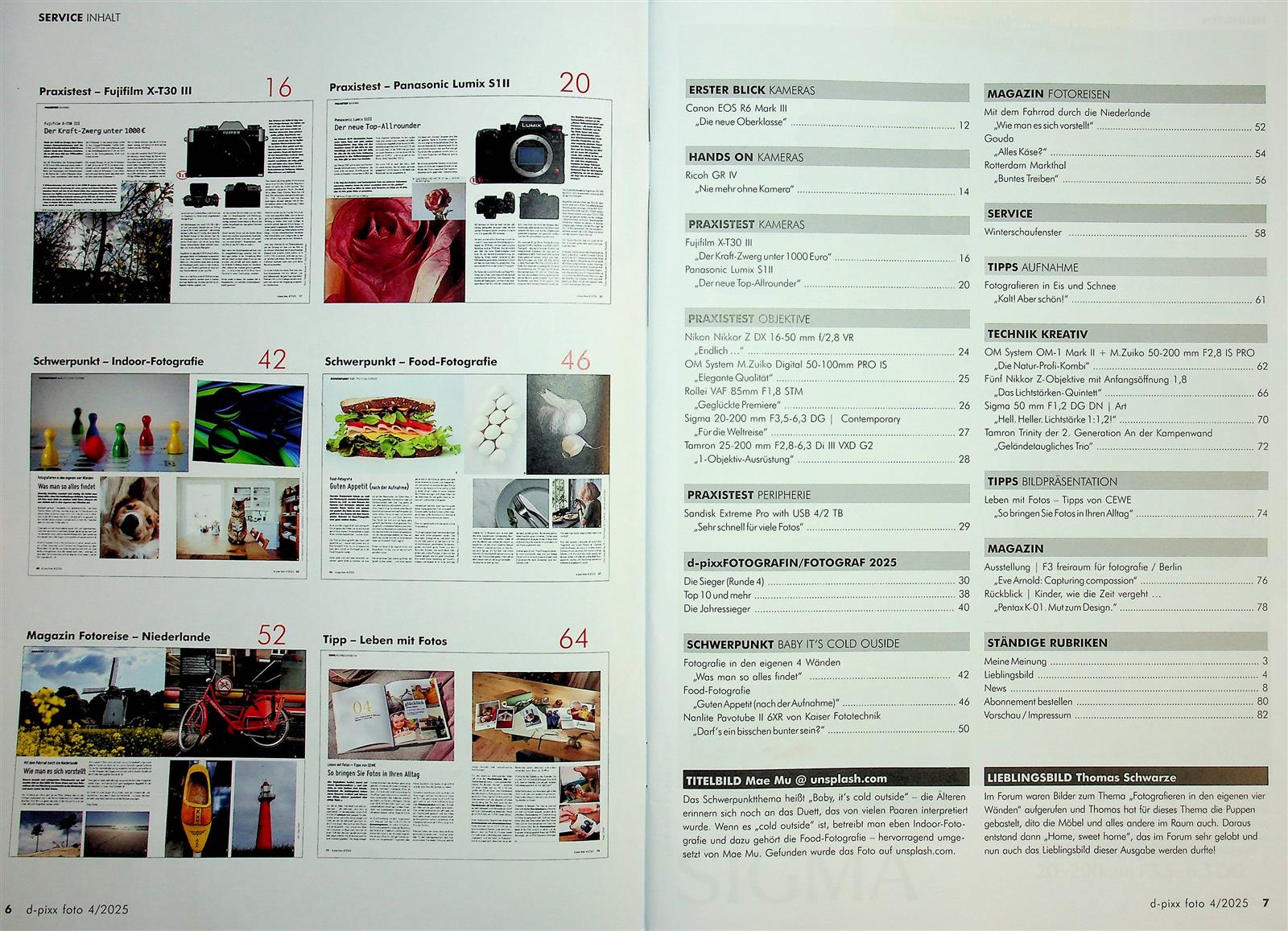 d-pixx ist die effizienteste Quelle für alle Hobby- und Profi-Fotografen, die Leidenschaft für die Fotografie in Fachwissen und gleichzeitig in Unterhaltung umwandeln möchten. Das Magazin bietet einen tiefen Einblick hinter die neuste Technik und Trends in Thema Digitalfotografie. Somit können sich die Leser nicht nur auf ein breites Portfolio von seinem reifen grafischen Werk freuen, sondern finden ebenso umfassende und weiterbildende Inhalte zur Praxis.