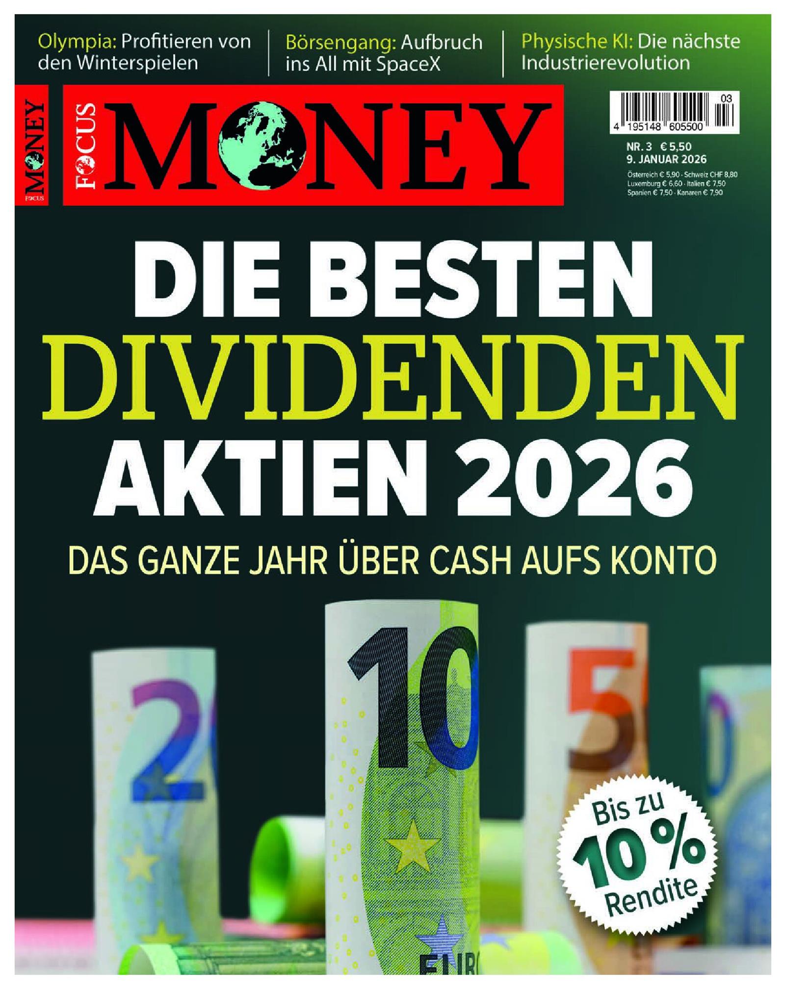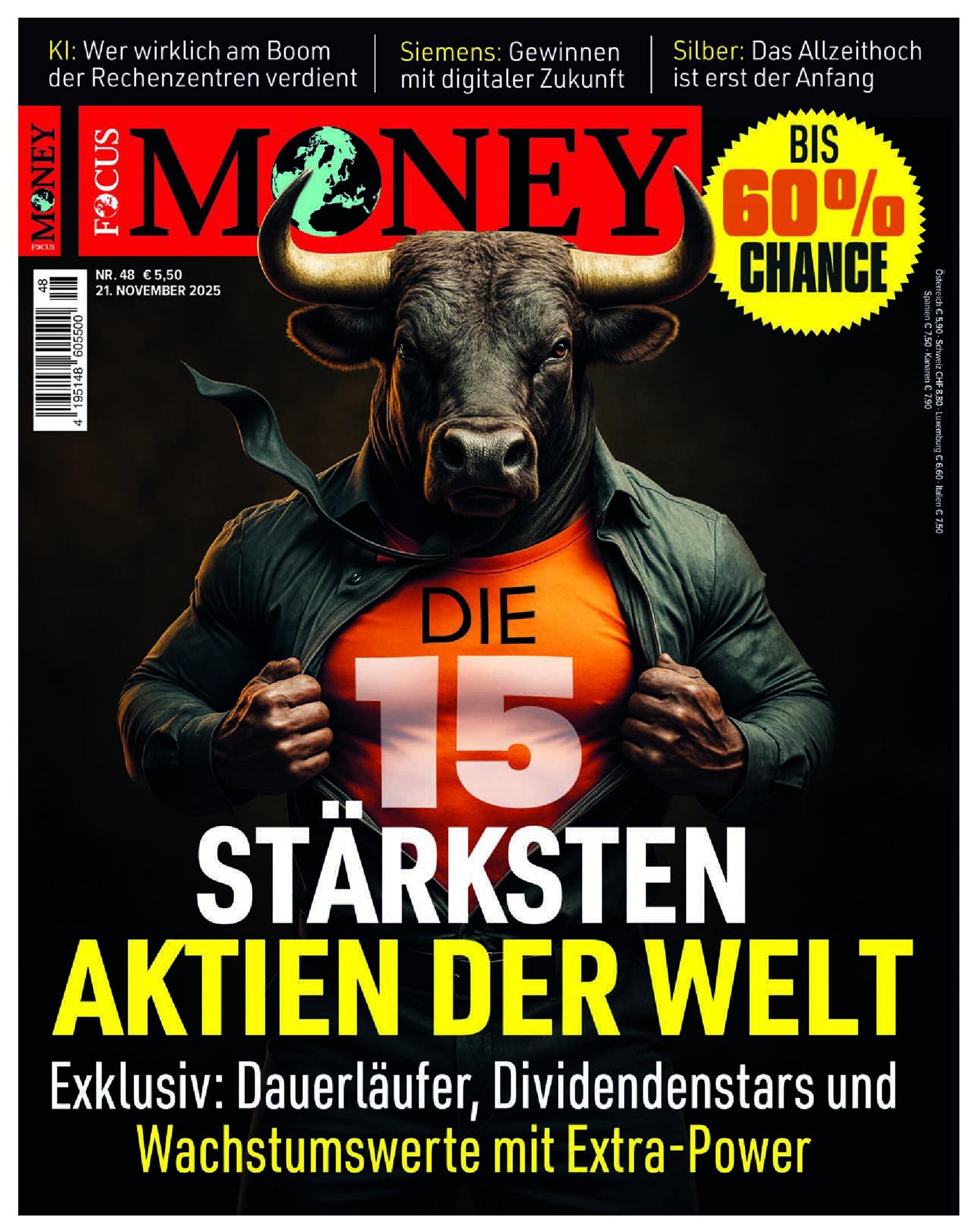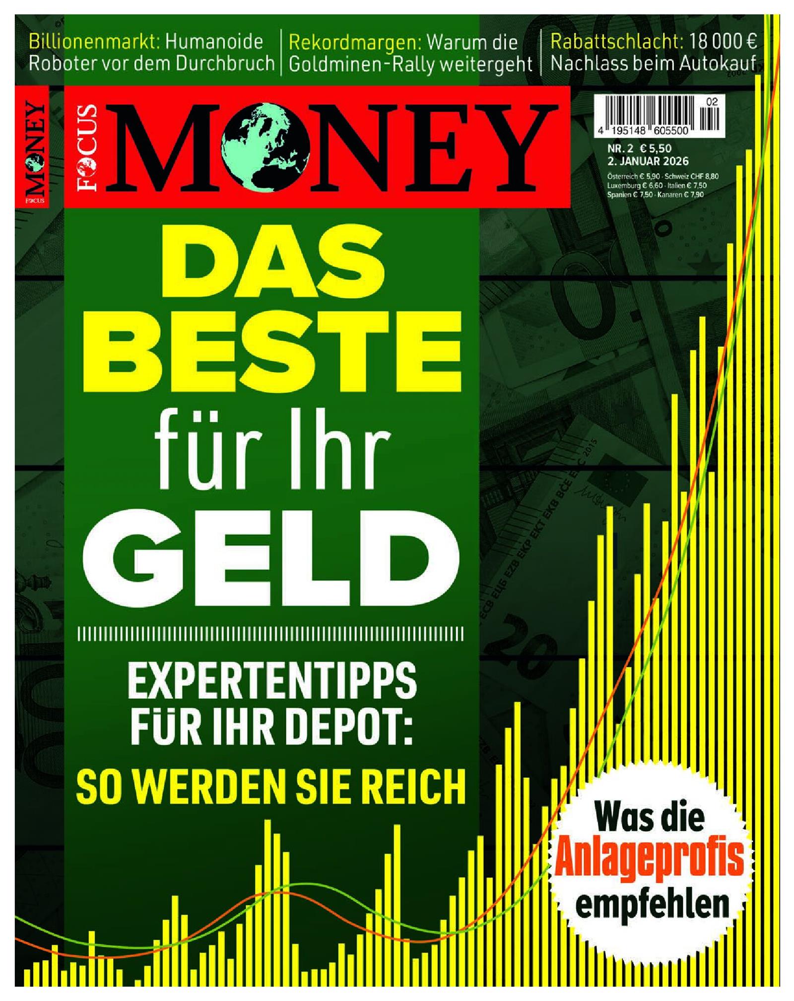 Focus Money ist ein wöchentlich erscheinendes Finanz- und Wirtschaftsmagazin, das sich durch seine umfassenden Berichterstattungen und präzisen Analysen auszeichnet. Seit seiner Gründung im März 2000 bietet es seinen Lesern aktuelle Themen aus Wirtschaft, Börse und Finanzwelt und gilt als verlässliche Informationsquelle für alle, die sich für wirtschaftliche Entwicklungen interessieren.
