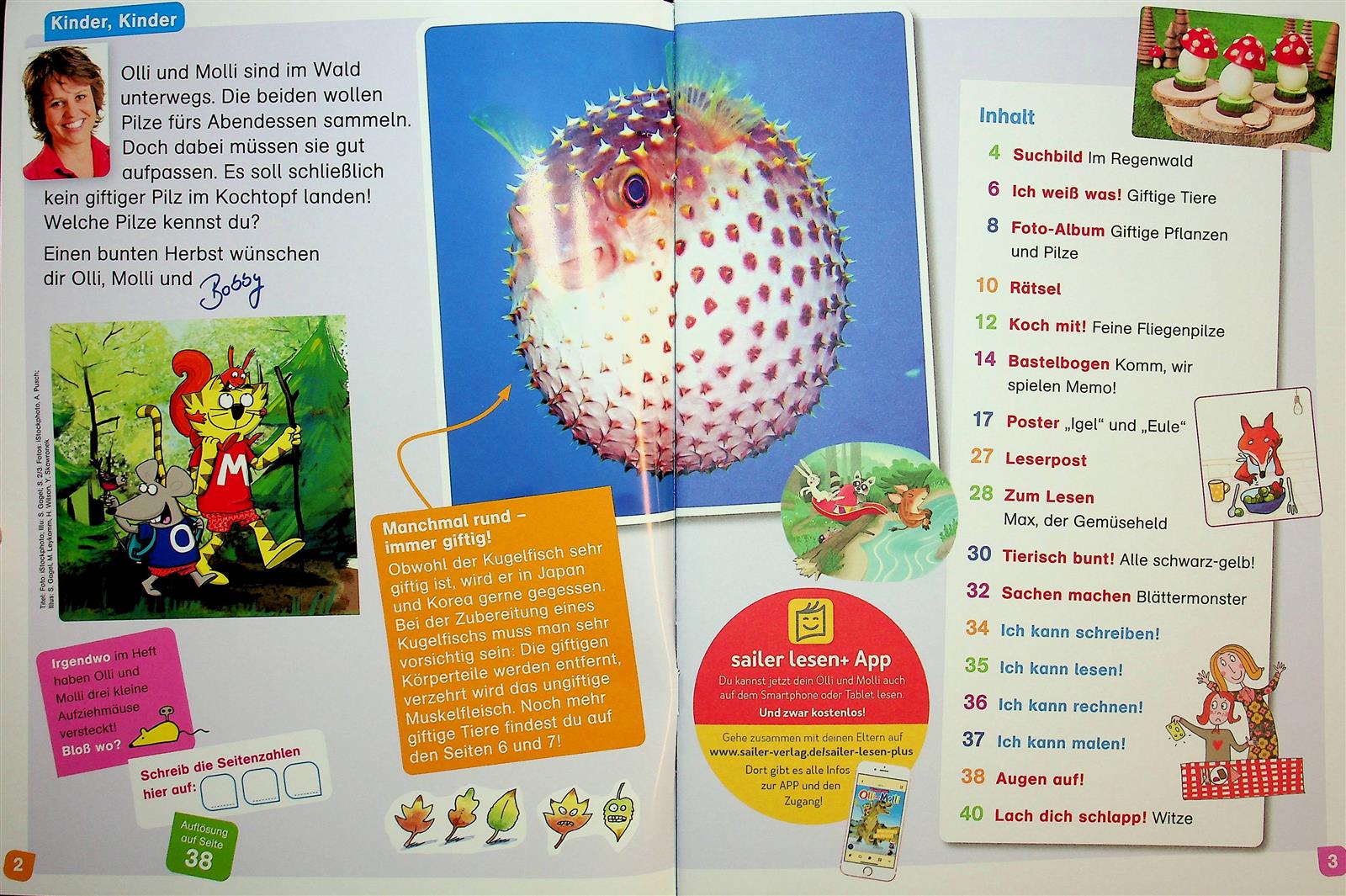 Sehr vielseitiges Magazin, gute und lehrreiche Berichte, Poster, Witze und Bastelanleitungen. Wir haben es immer sehr gerne zusammen gelesen. Nun ist es leider soweit, dass mein Sohn sich "zu alt" fühlt für Olli und Molli und lieber etwas für "grössere"Jungs liest.
