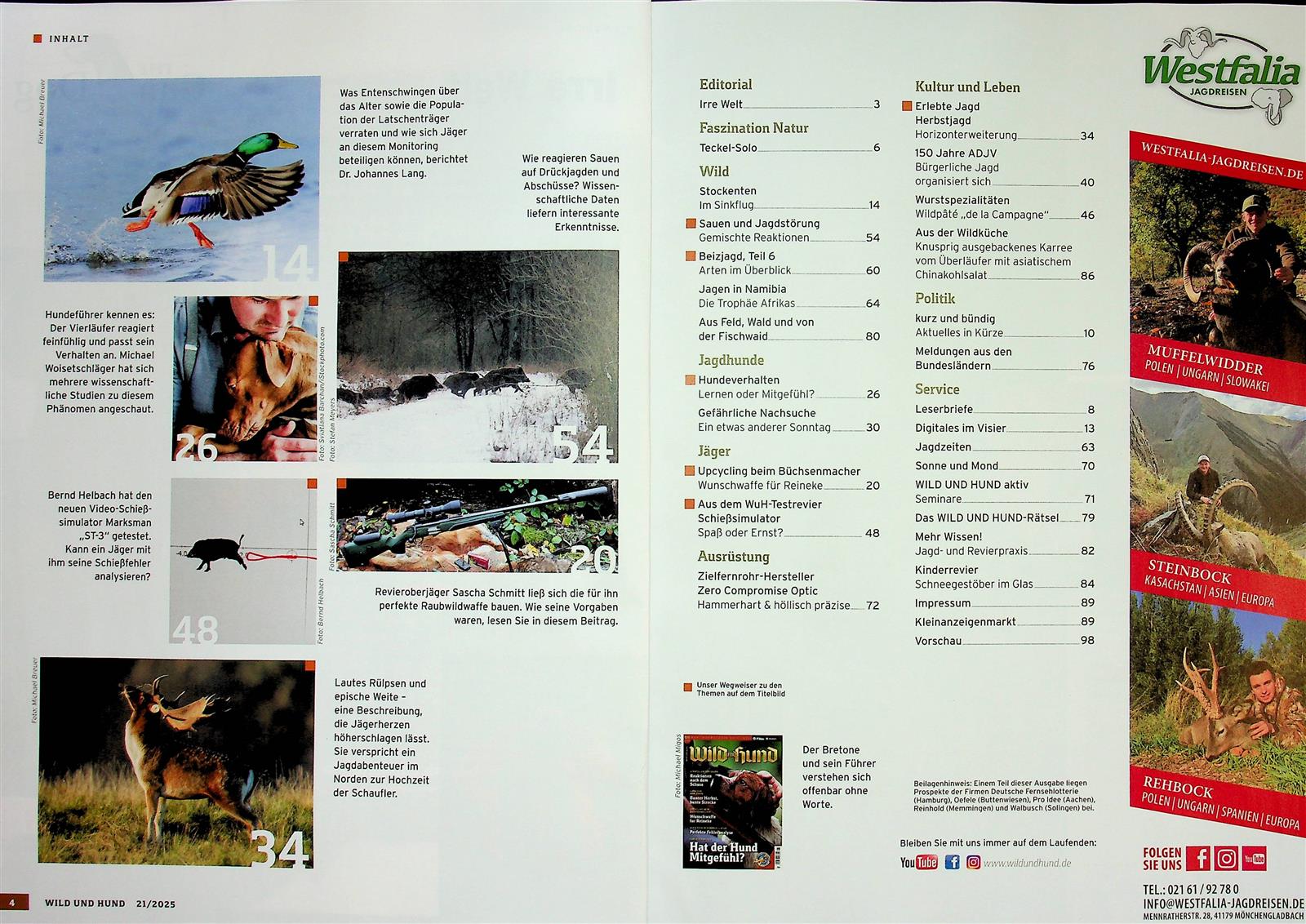 Die regelmäßige Thematisierung jagdpolitischer Entwicklungen, das klare Bekenntnis zur Waidgerechtigkeit und die enge Verbindung zur Jagdpraxis machen Wild und Hund zur vertrauenswürdigen Stimme im deutschsprachigen Jagdwesen.